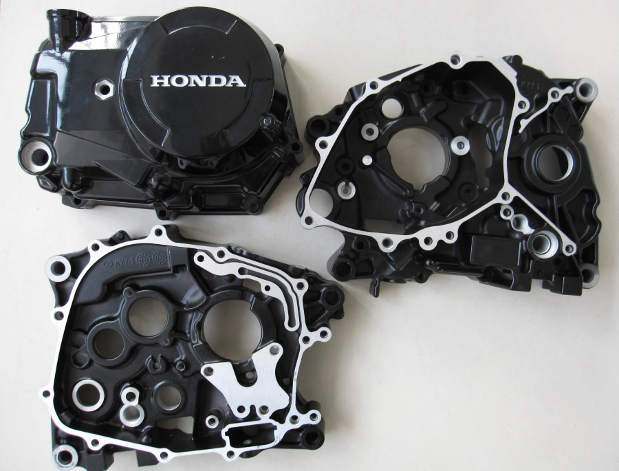 五羊-本田KPH系列摩托车发动机左右箱体、左右边盖,此系列的摩托车是目前该公司弯梁车的代表车型。